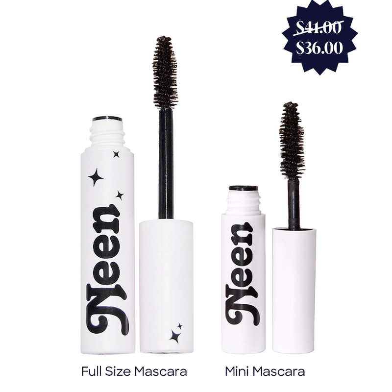 Pretty Extra Mascara in black is easy to apply, cozy wear, and stays put without flaking or smudging. Our signature brush nails it every time, whether you're using the full size or our new travel-sized mini.