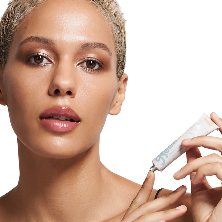 Pretty Shiny Cream Highlighter is best applied with fingers. It can be swept onto the lids, cheekbones, top of the nose and cupid's bow. This product is more shiny (less glittery). You can also mix it into your foundation for a hydrating, dewy look for both face and body.
